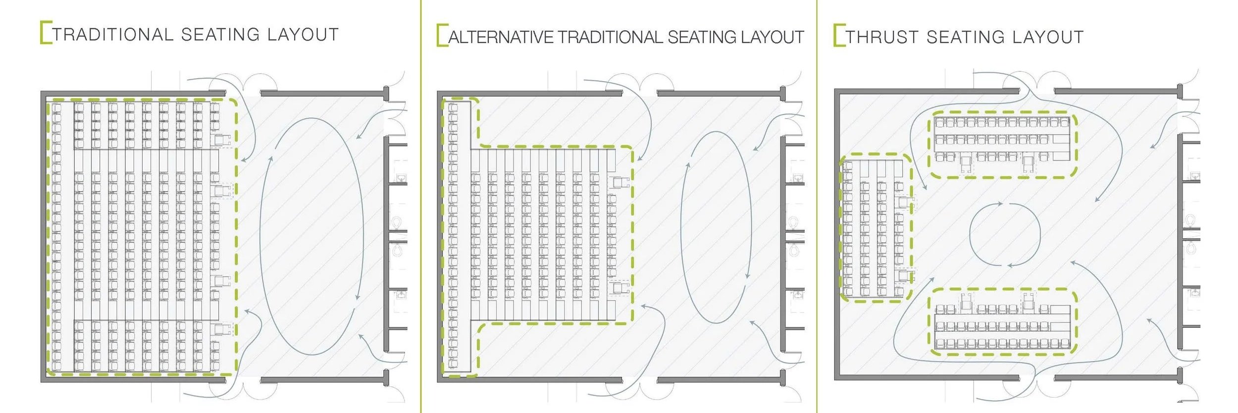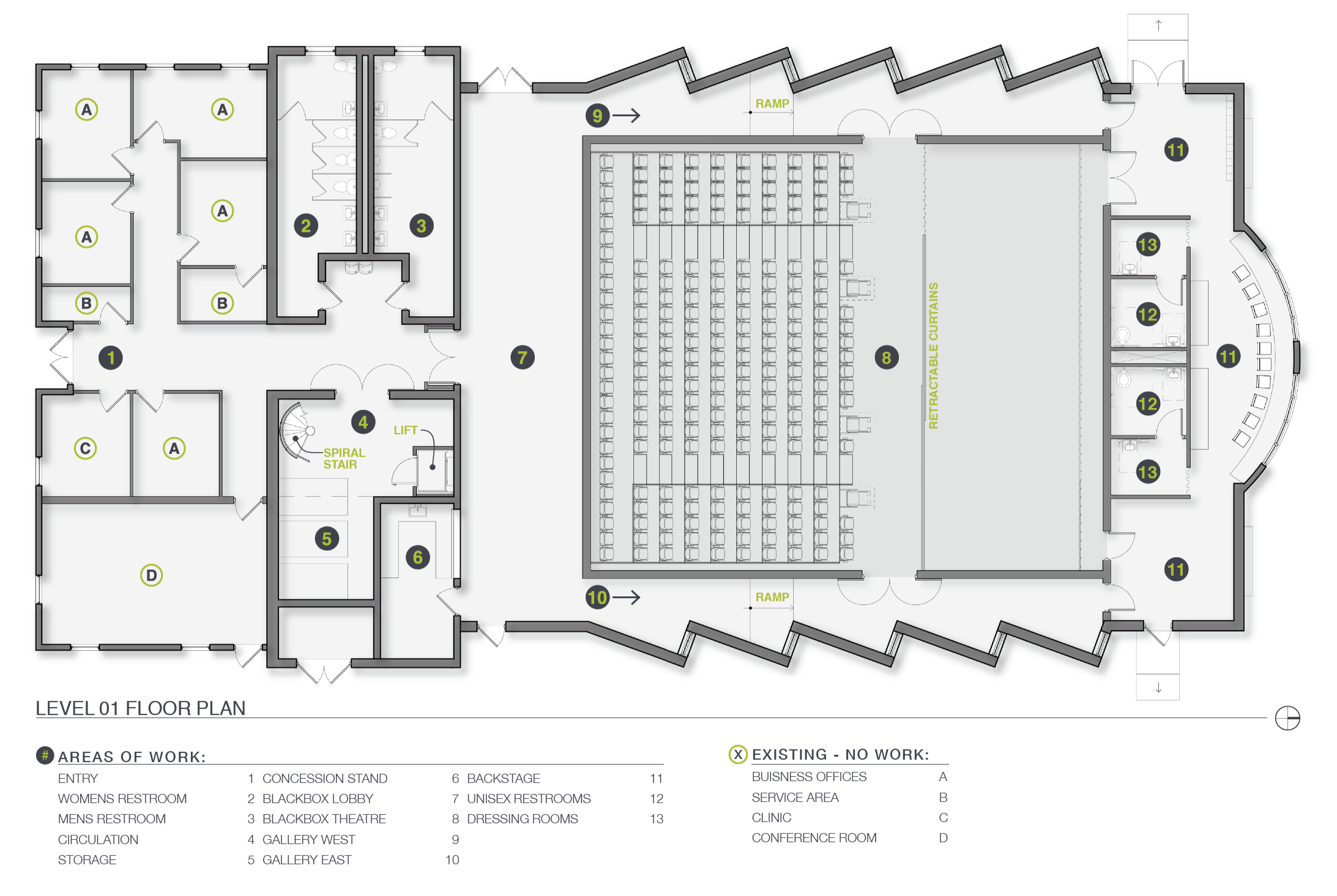 More than a performance venue, Building 800 celebrates the full process of making. Surrounding the theatre, an art gallery titled The Walk will feature rotating exhibitions of student work, turning circulation into culture and making visual art an everyday experience. The project also elevates backstage and support spaces, intentionally bridging the gap between audience and performer to reveal rehearsal, preparation, and production as essential parts of the art form. The result is a campus cultural anchor that strengthens student voice, invites community engagement, and showcases the arts from first sketch to final bow.